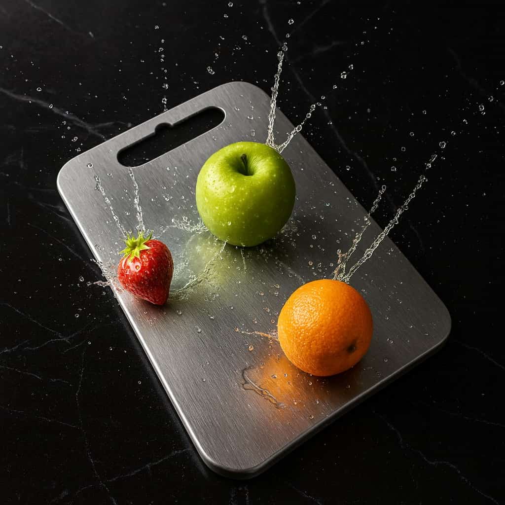Ob Fisch, Fleisch oder Gemüse – das TitanPro Schneidebrett schützt vor Bakterien, Gerüchen und Verfärbungen. Die porenfreie Oberfläche ist frei von Mikroplastik, Weichmachern und schädlichen Partikeln. Für sauberes Arbeiten auf höchstem Niveau.